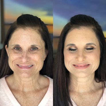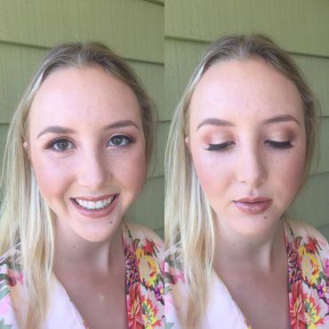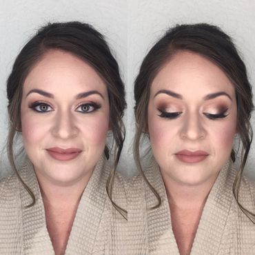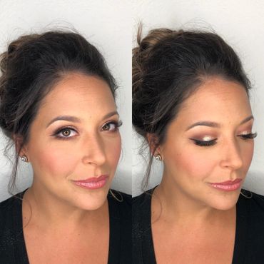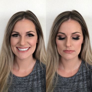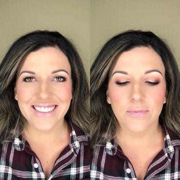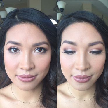 Minimal foundation, contour, and highlight. Natural earth toned shadows with soft lashes and a subtle soft lip.